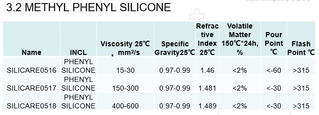 SILICARE0517 METHYL PHENYL SILICONE 150-300, 0.97-0.99, 1.481, <2% , <-30, >315